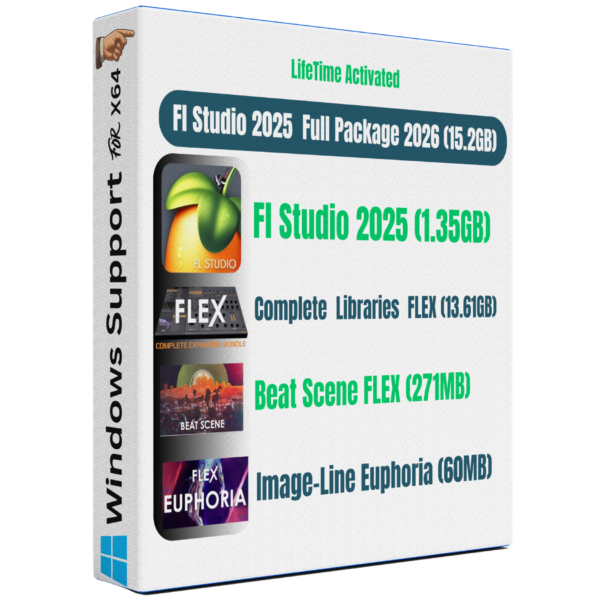 FL Studio 2025 Full Package 2026 LifeTime is the ultimate music production bundle, including Producer Edition 25.2.4, All Plugins, all FLEX libraries, Beat Scene, and Euphoria packs. Enjoy lifetime updates and powerful tools for every genre.