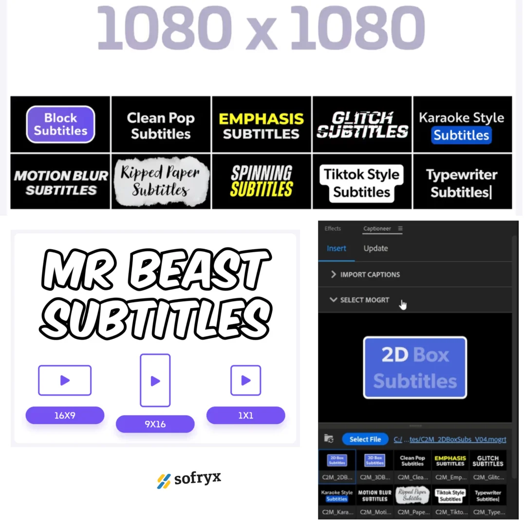 Create subtitles with custom MOGRTs, professional presets, and automatic
