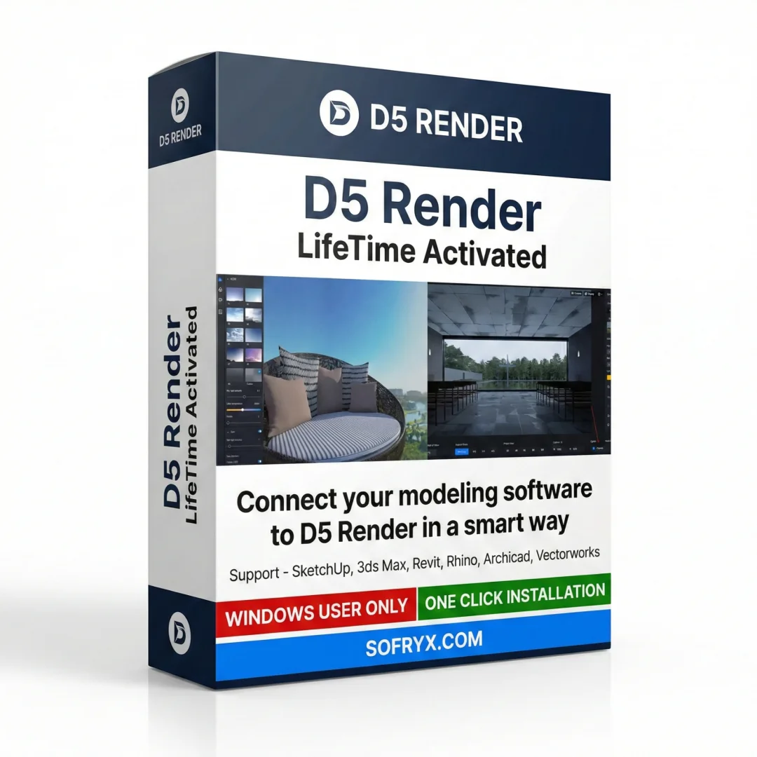 After purchase, you’ll receive complete installation files and activation instructions via your Sofryx account dashboard. Download D5 Render from “My Account → Downloads” immediately. Follow the step-by-step installation guide to install the software on your Windows computer. Run the activation utility and enter your official activation credentials. D5 Render appears immediately in your system with full access to real-time rendering engine, materials library, lighting simulation, and all visualization features. Professional video tutorials demonstrate advanced visualization techniques and workflow optimization. Telegram support provides priority assistance with activation or technical questions. Most users have D5 Render installed and fully operational within 15-20 minutes of purchase. Lifetime activation means permanent access without renewal concerns.