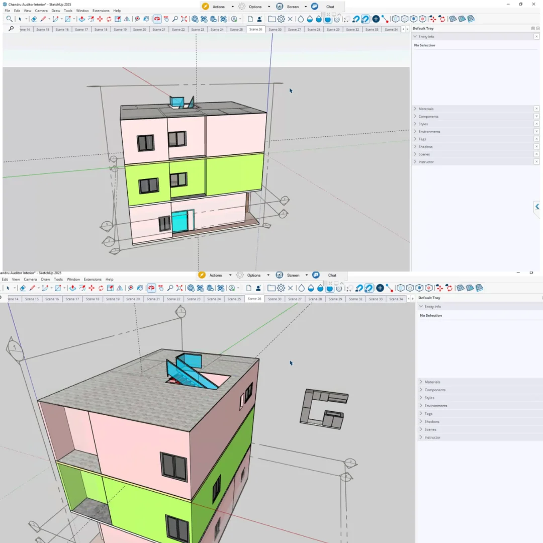 • 3D Warehouse Access: Browse and download from a vast online library of pre-built 3D models, furniture, fixtures, vegetation, and architectural components.