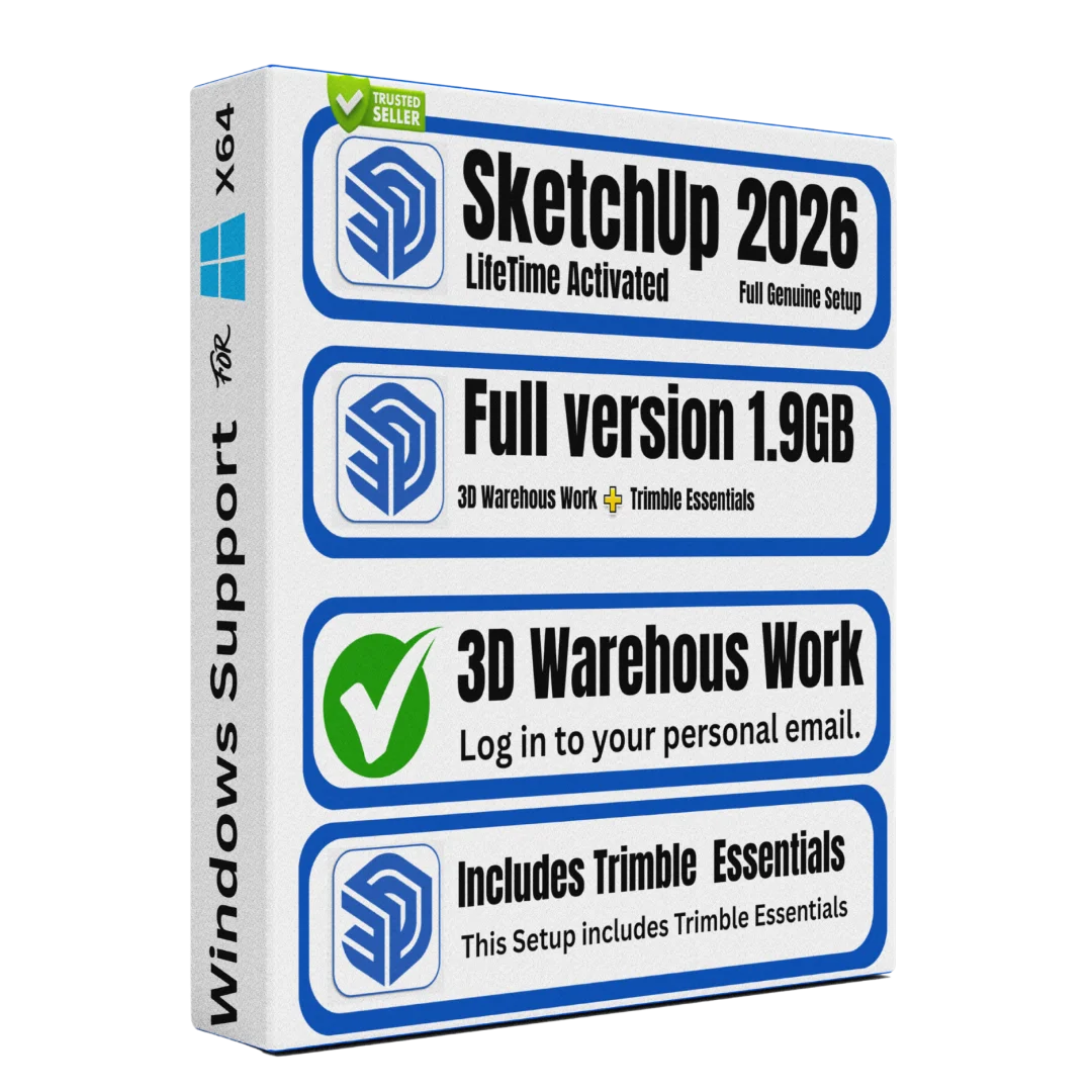 SketchUp Pro 2026 Full Package is the latest and most comprehensive edition of the professional 3D modeling platform, delivered as a 1.9GB complete installation that includes SketchUp Pro 2026, LayOut for construction documentation, and the Trimble Scan Essentials tool for importing point cloud data from 3D laser scanners directly into your modeling workspace. This all-in-one package combines the newest SketchUp features with point cloud integration, push-pull 3D modeling, dynamic components, 3D Warehouse access, extensive format support, and V-Ray compatible rendering output. Whether you are a surveyor modeling from laser scans, an architect planning building renovations, or a construction manager coordinating scan-to-BIM deliverables, SketchUp Pro 2026 Full Package provides the complete professional toolkit. Every licence on Sofryx is personally tested by Mani.